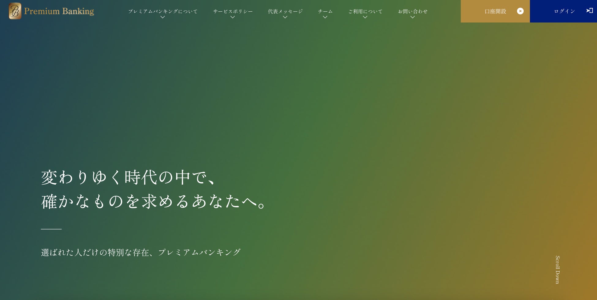 プレミアムバンキングは、特別な投資家様の資産運用をトータルサポートするサービスです。大切な資産を守り、育て、未来へ繋げたいと願う投資家の皆様をご支援してまいります。