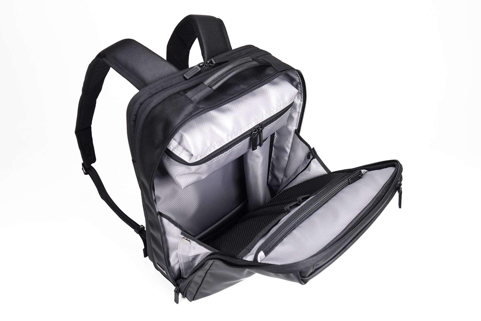 通勤から出張まで対応できるよう、ファスナーを開くことで容量を増やせる「エキスパンダブル機能」を搭載しました。