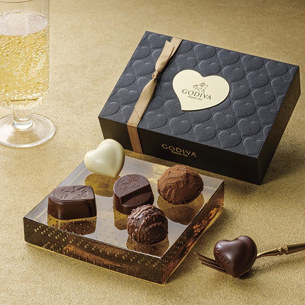 男性でも手に取りやすいデザインのブラックラインに、2024年よりプレミアムラインが登場。ホワイトチョコレートでコーティングされた真っ白なハート形のチョコレートをワンポイントに、ゴディバの代表的なダークチョコレートと、ゴディバ創業者ピエール・ドラップスのレシピによるゴディバ初のトリュフや、ドラップスへのオマージュとしてリバイバルした特別なトリュフを詰め合わせ、ゴールドのプレートが光り輝く、シックでプレミアムなアソートメントに仕上げました。※写真はイメージです