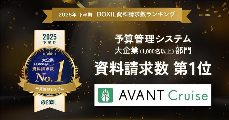 アバント、AVANT Cruiseが「2025年下半期 BOXIL資料請求数ランキング」 予算管理システム 大企業向け部門1位に選出