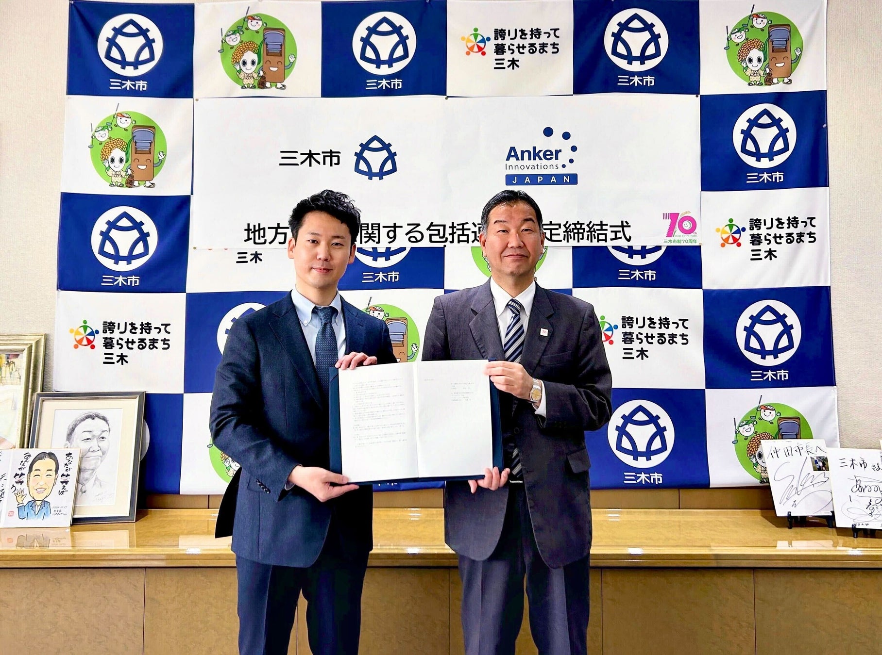 アンカー・ジャパンは、兵庫県三木市と「地方創生に関する包括連携協定」を締結いたしました。ポータブル電源等の提供により災害時の電源確保や機器の充電をサポートする他、IOT技術等を活用した働き方の改善や地域課題の解決に向けたデータ活用、実証実験等の実施を予定しています。