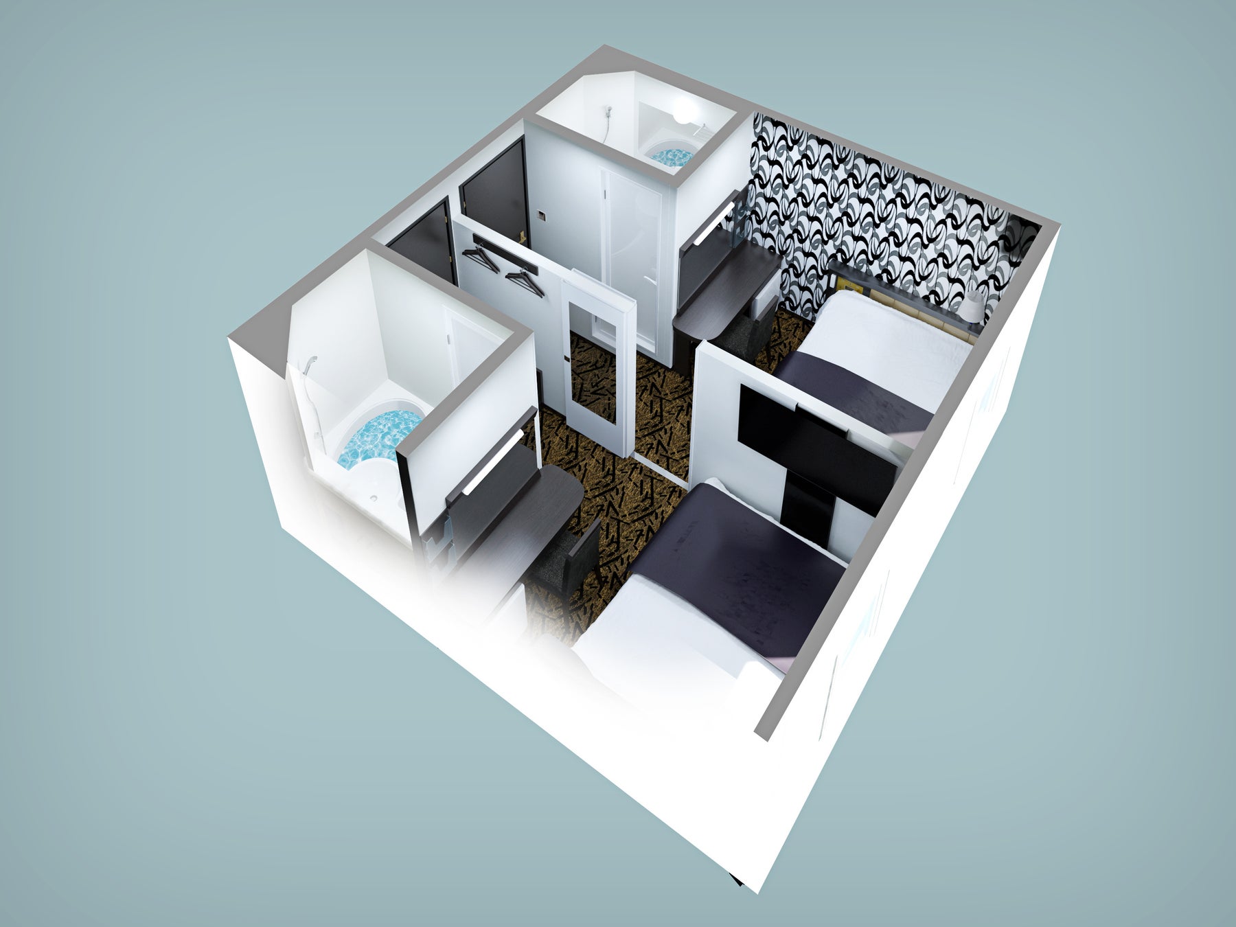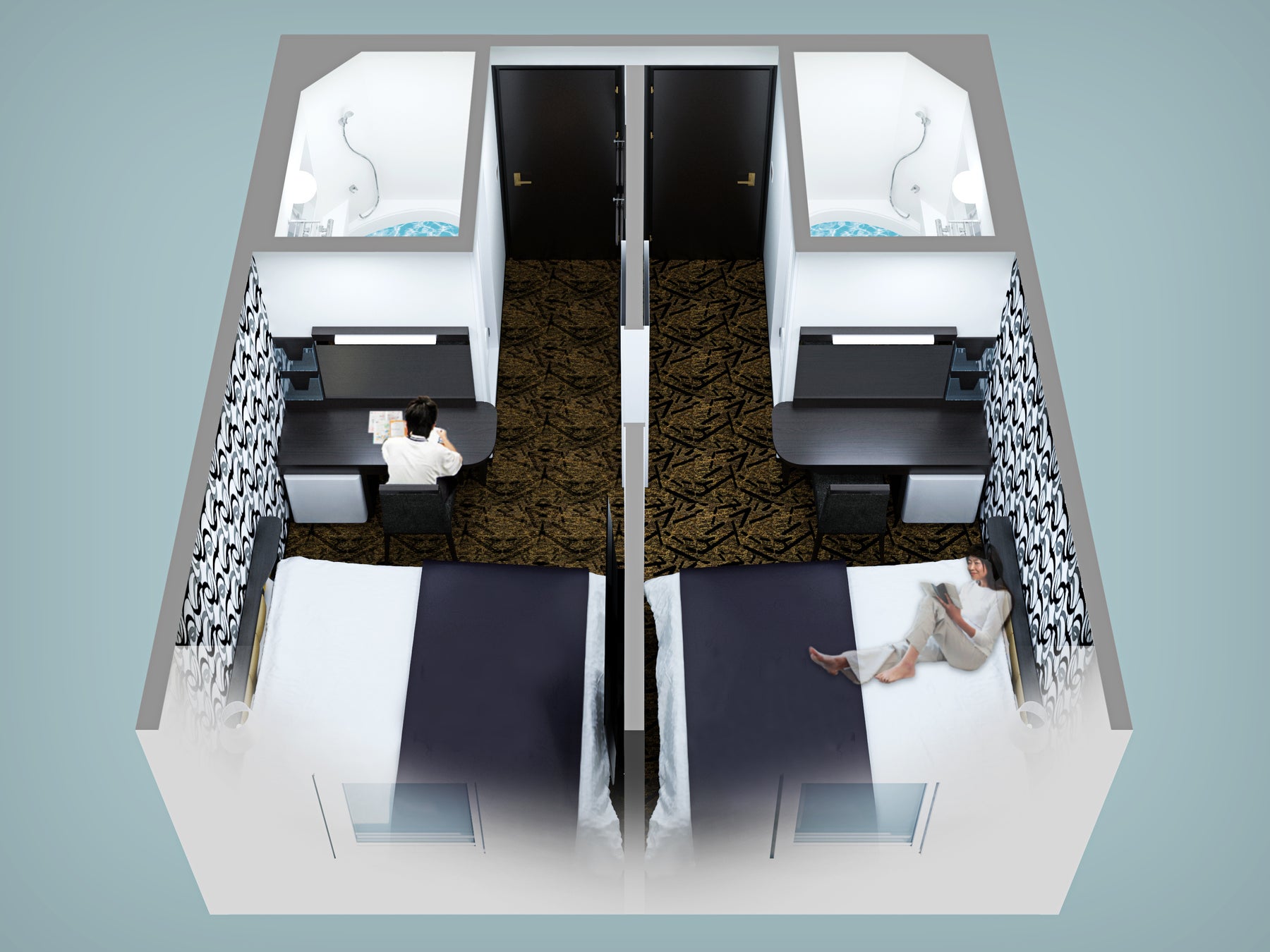 ※シングル-シングルコネクトツインルームの俯瞰イメージ。