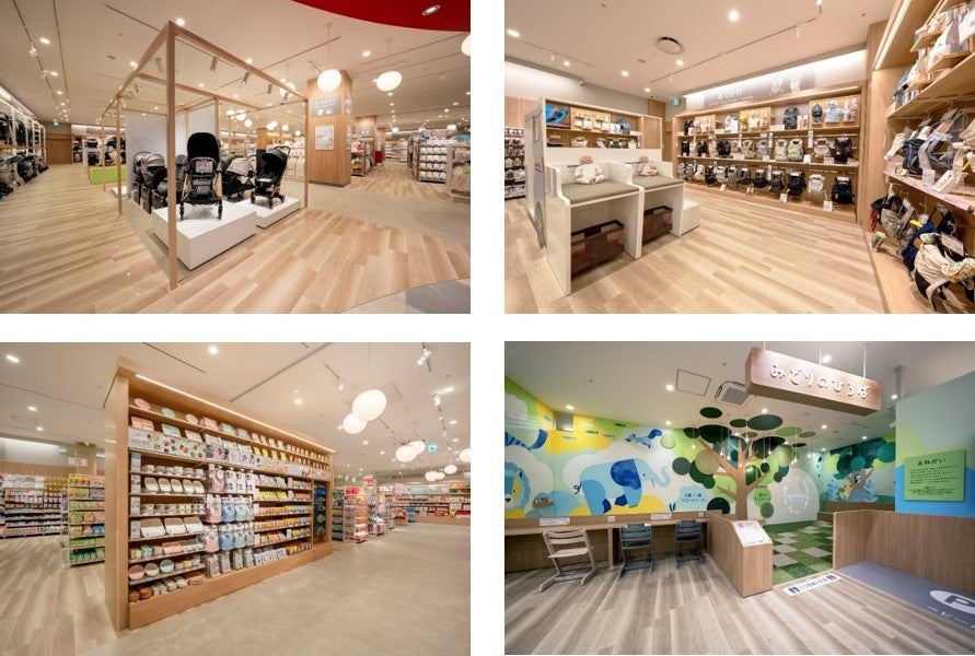 また、これまで本プロジェクトで行ったリニューアルにおいて、お客さまからの支持をいただいている遊びと、まなびのある場である「みどりのひろば」も導入しています。「アカチャンホンポ ららぽーと安城店」においては、赤ちゃんと過ごせる休憩スペースや食事スペースをご用意しており、お買い物の合間のひとときをゆったりと過ごすことができます。