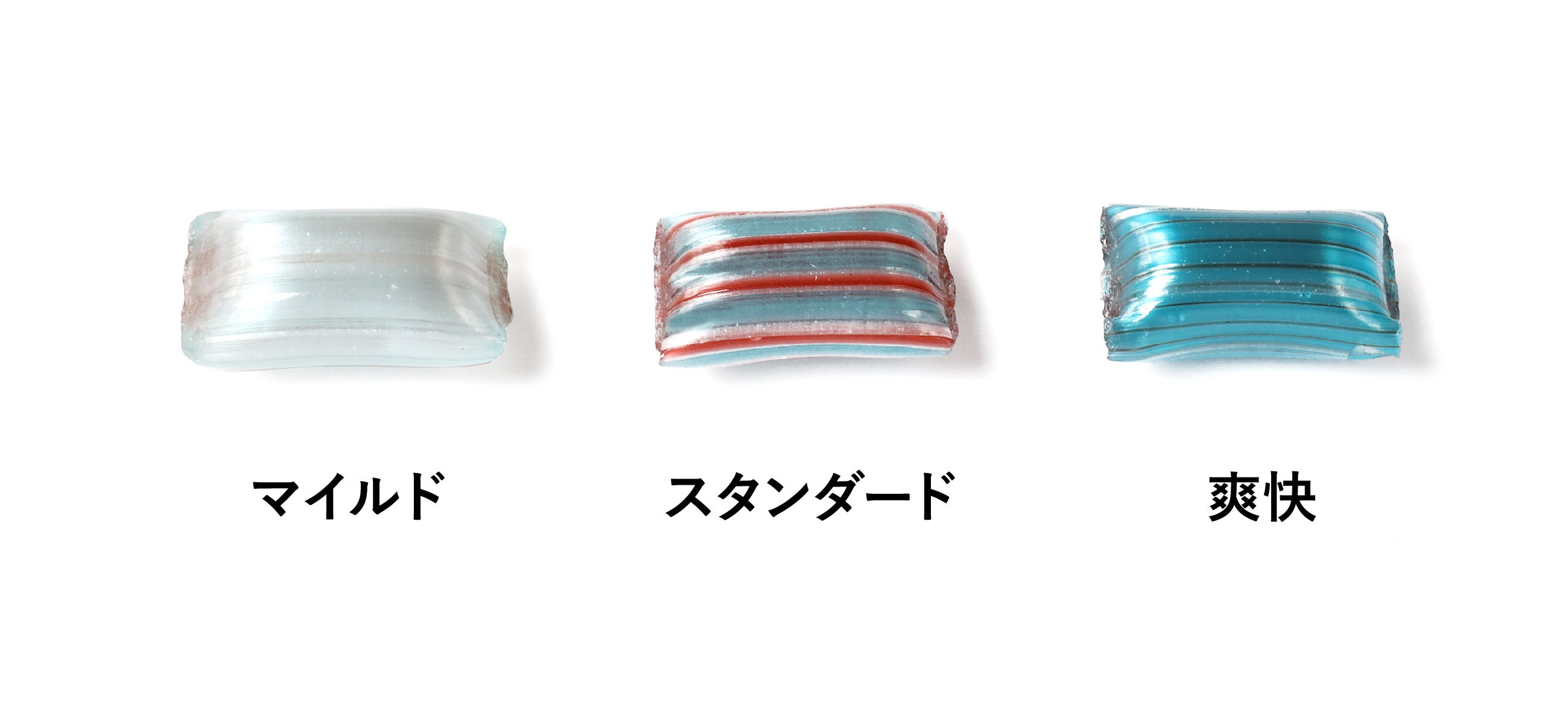 いろいろなミントレベルを楽しみたい方には、3種のキャンディが入った「ミックス」がおすすめ。3倍以上入った大容量の「Lサイズ」や、王道の「スタンダード」を単品で楽しめるBAGタイプもご用意しています。