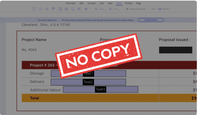 - 「コメント・フォームフィールド・署名の追記が可能」「ページの編集の抽出を禁止」