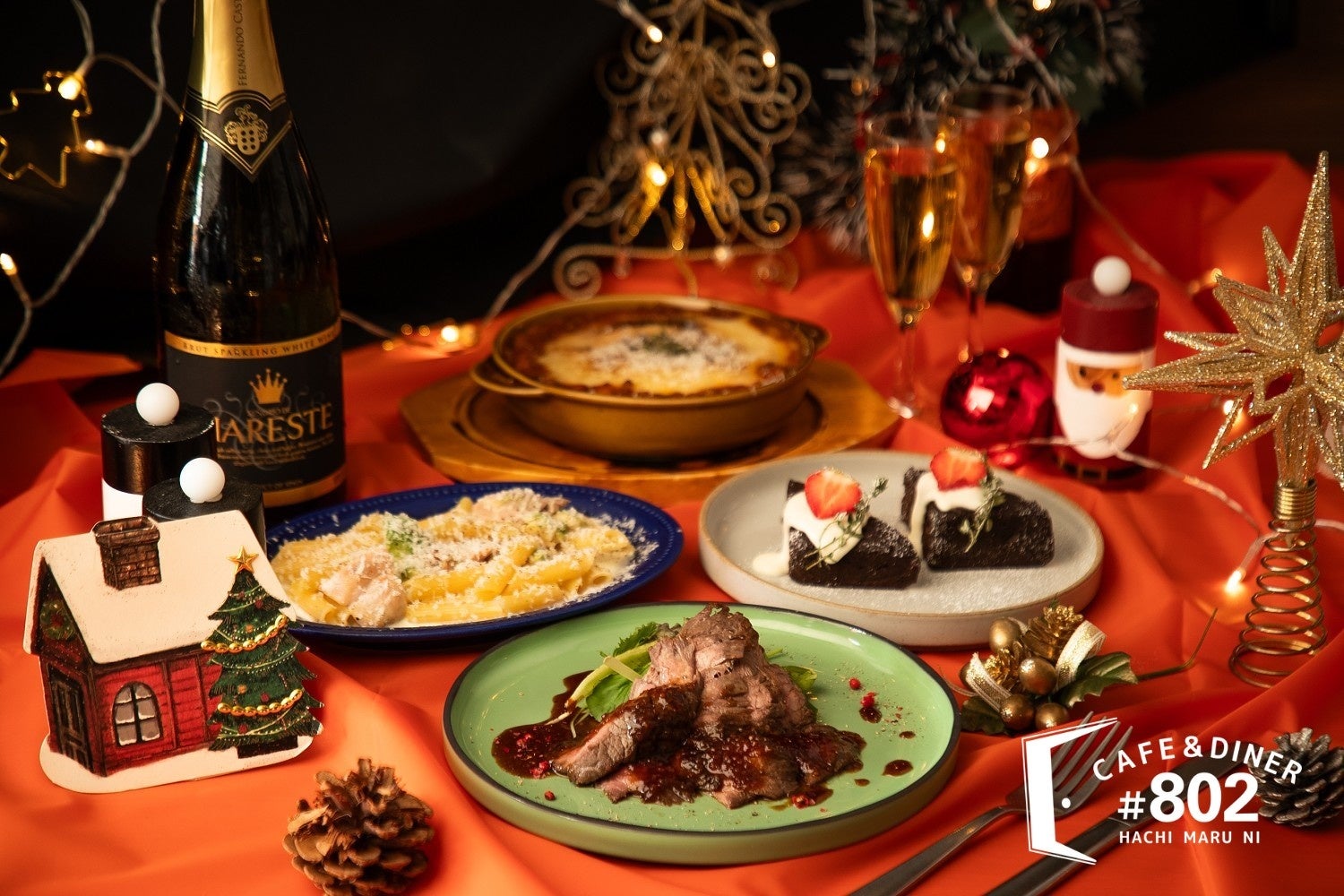 【渋谷の人気隠れ家カフェで楽しむクリスマス】厚切りローストビーフや名物ラザニア&飲み放題!#802 CAFE&DINER 渋谷店にてクリスマスコースご予約受付中!