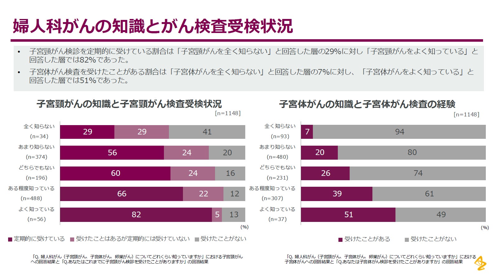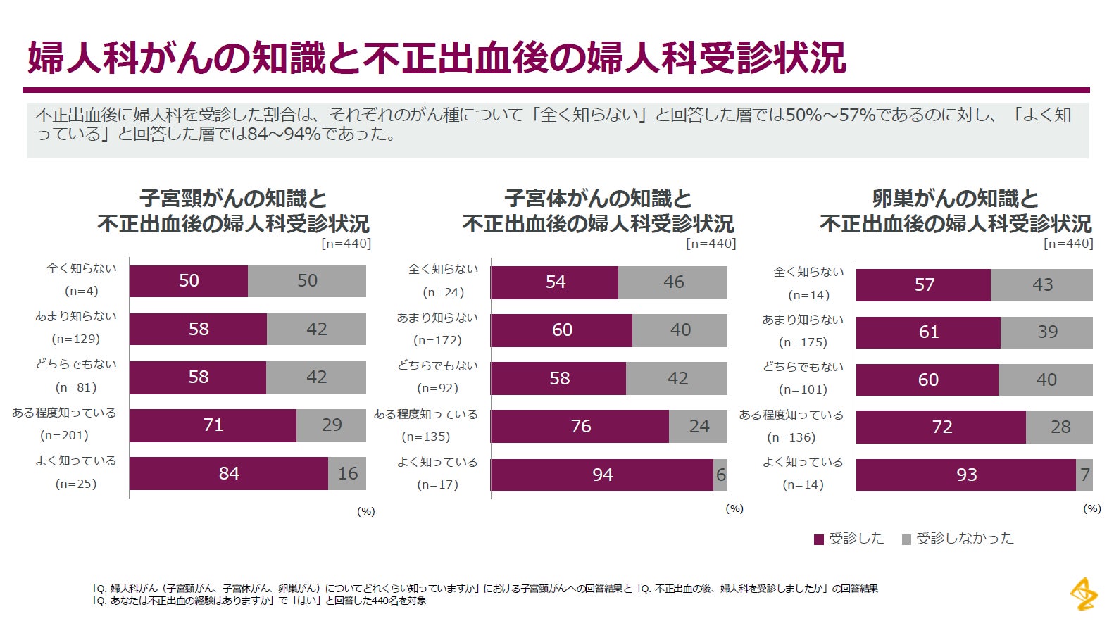 企業従業員における婦人科がんの認知・知識・受療行動の実態、企業に求める支援のニーズを定量的に把握し、得られた知見をもとに婦人科がんの理解促進や婦人科受診支援のための効果的な施策設計のインサイトを得るためのWeb調査 |