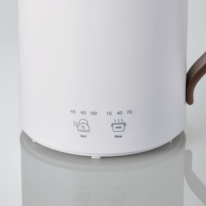 マグカップ型の器具1台で、手軽に「沸かす・煮る・保温する」が可能。料理やドリンクが完成するまでずっとキッチンに立っている必要がなくなります。デスクに置いても邪魔にならないコンパクトサイズで、1杯分(350ml)だけお湯を沸かしたり飲み物を淹れたりするのにもぴったりです。温め直しや長時間の保温ができるので、離席しがちなビジネスパーソンや子育て中の方にもおすすめです。煮込み調理は材料を入れて机の上でできあがりを待つだけでOK。仕事中にデスクで調理もできます。