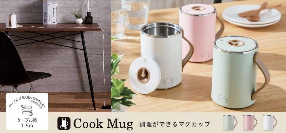 1台で沸かす・煮る・保温するができる!マグカップ型電気なべがロングコードになってリニューアル!より使いやすくなったCook Mug(クックマグ)を新発売
