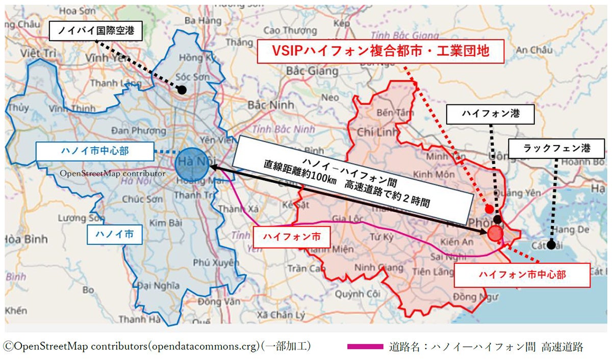 本物件は、ベトナム北部最大の港湾都市ハイフォン市のVSIPハイフォン複合都市・工業団地内に位置しています。同市は港や空港にも近接しているほか、首都ハノイ市と主要幹線道路で結ばれており、アクセスが優れていることから、広域物流拠点として高い優位性を持つ立地です。