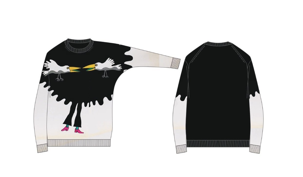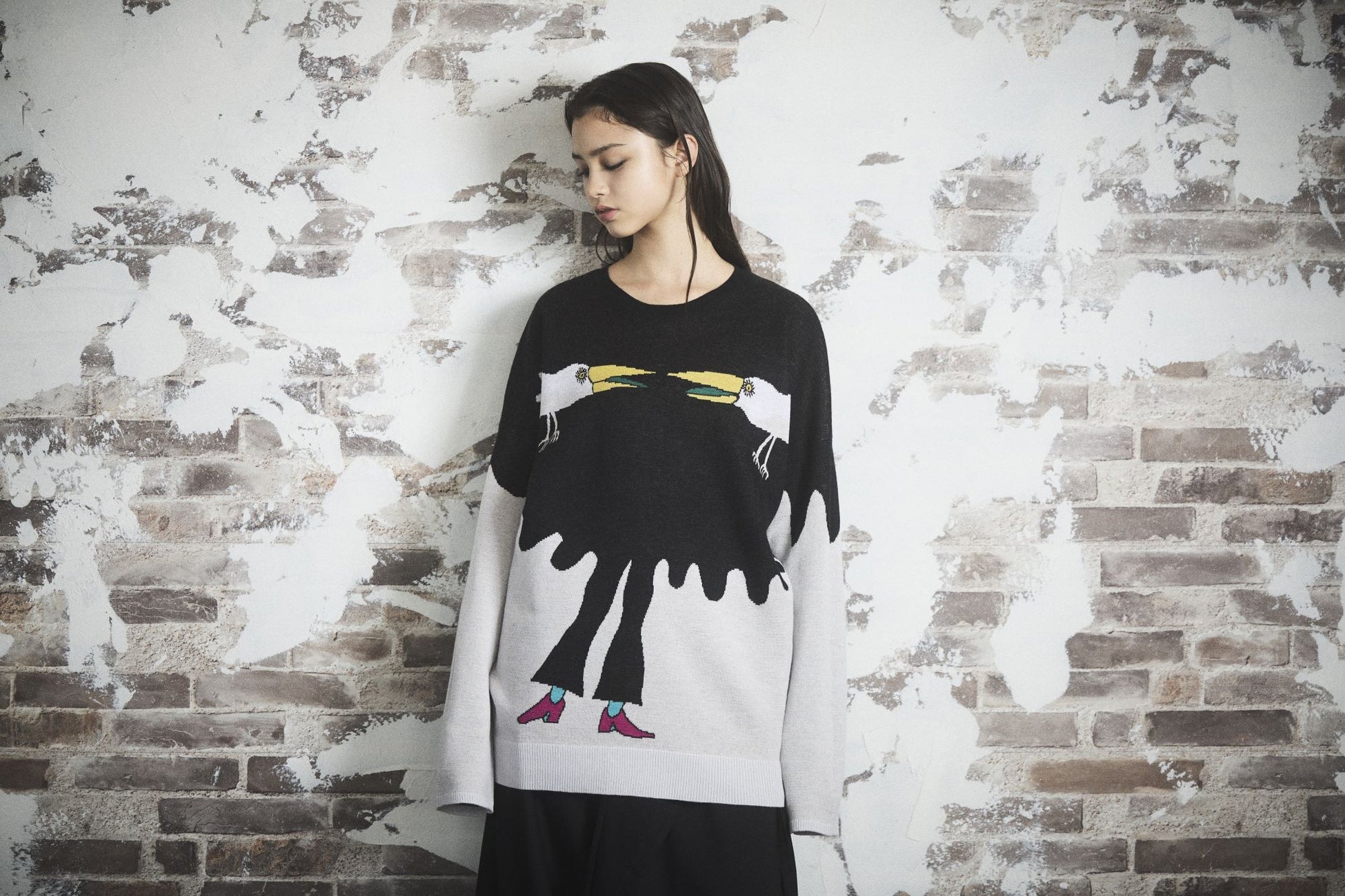 1960年代に描かれたイラストレーション『魔女と白いカラス』からグラフィックを印象的に切り取り、カラスにフォーカスしたGround Yのニットは当時の時代感覚を見事に映し出した田名網氏の作品を現代のファッションとの融合でモードに表現いたしました。
