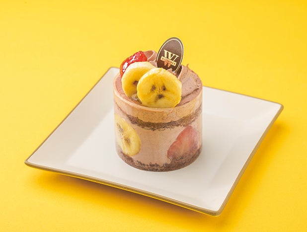 濃厚で香り高いチョコクリームとショコラスポンジ、エクアドル産バナナと甘酸っぱい苺を組み合わ