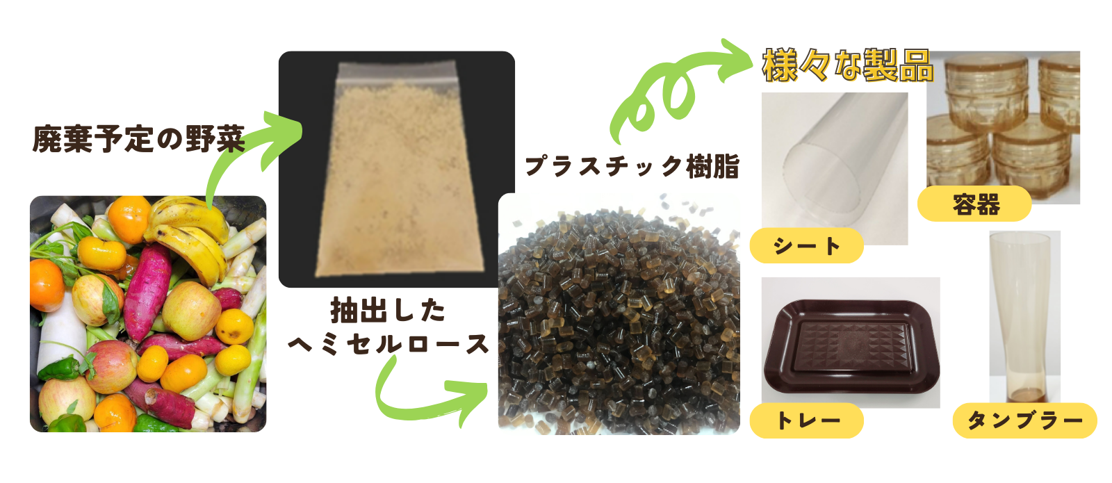プロジェクト名 商業施設で廃棄される野菜や果物の端材等をアップサイクルした植物由来プラスチック製品の開発