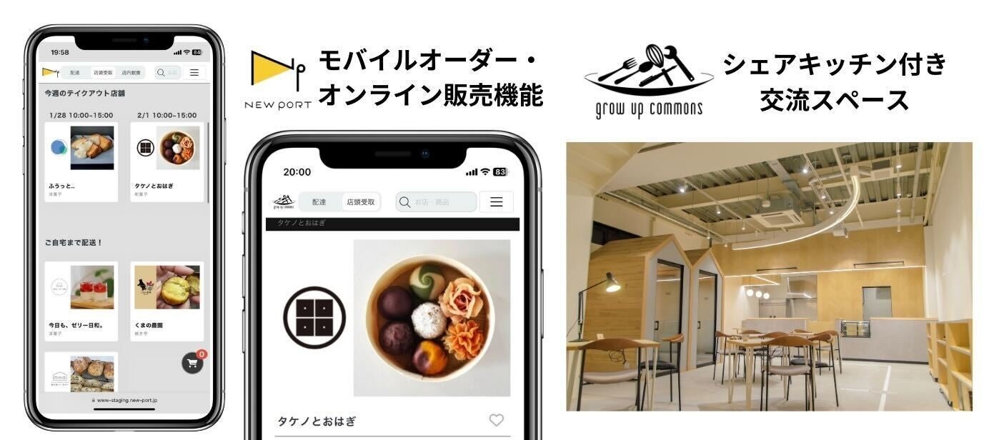 ・こうした課題を解決するために、スカイファーム株式会社が運営するモバイルオーダーシステム「NEW PORT」と、東急株式会社が運営するシェアキッチン併設型スペースを連携させることで、様々な飲食店等が対面販売とオンライン販売の両方を簡単に実施できる仕組みを構築し、デジタルを活用したポップアップストアの実証事業を行います。