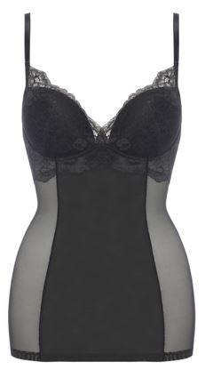 ウェストのシェイプをきれいに整えるノンワイヤーのブラトップです。凹凸感が少ないレースで、アウターもすっきりと。身生地はパワーネット素材で肌がうっすらと透けて、センシュアルなムードが漂います。