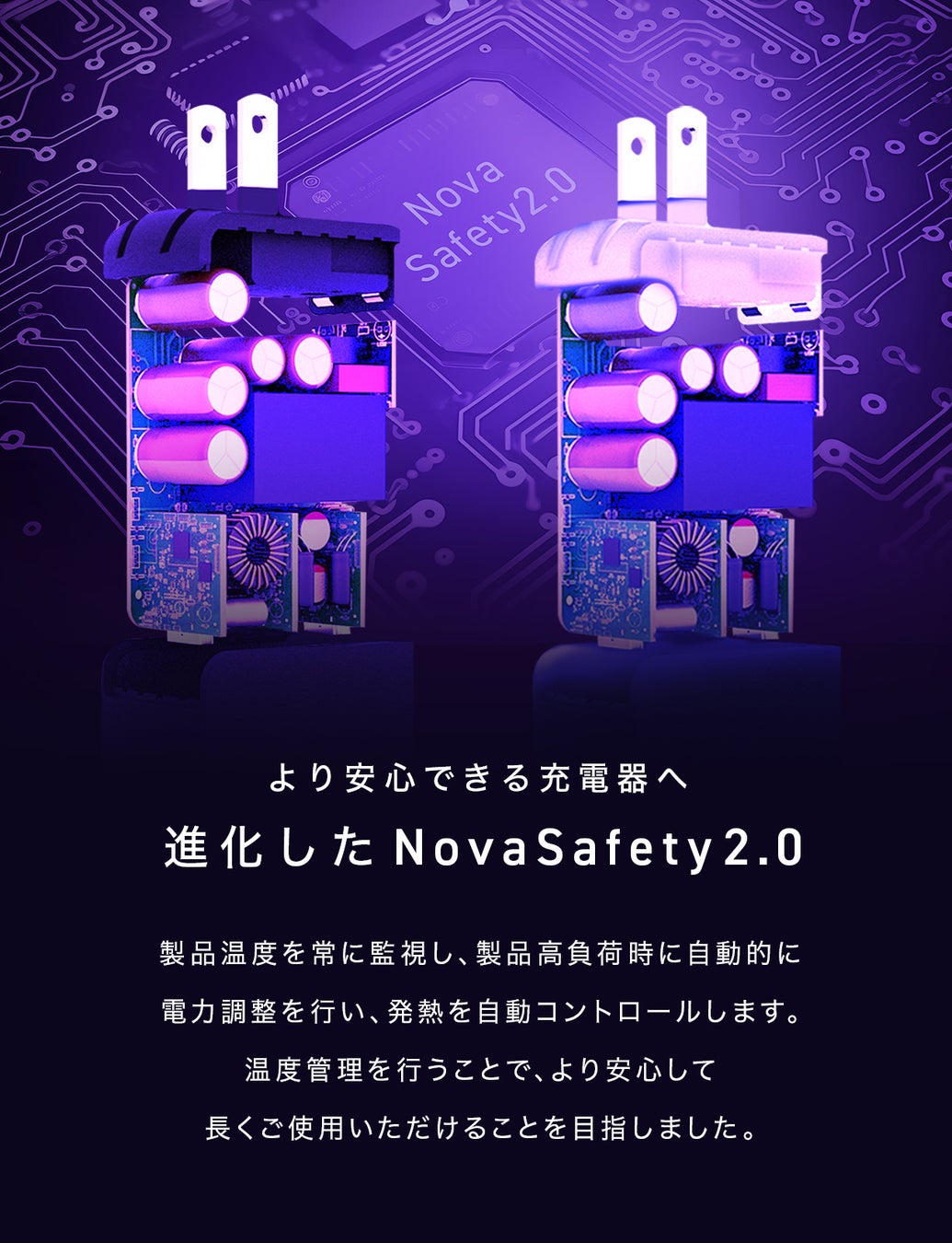 超小型充電器だからこそ“発熱対策”。独自の安全機能「Nova Safety2.0」搭載!