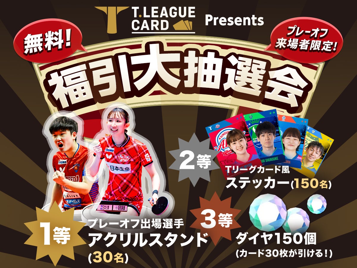 Tリーグ 2023-2024シーズン プレーオフ@代々木第二体育館にご来場の方限定で、必ず何かが当たる、無料の福引き抽選会を開催いたします。