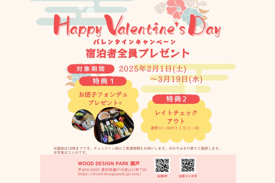 古民家で過ごす、和のバレンタイン~グランピング宿泊者様全員に特製お団子フォンデュで至福のバレンタインステイを演出~【ウッドデザインパーク瀬戸】愛知県瀬戸市