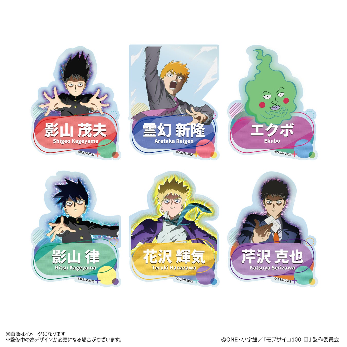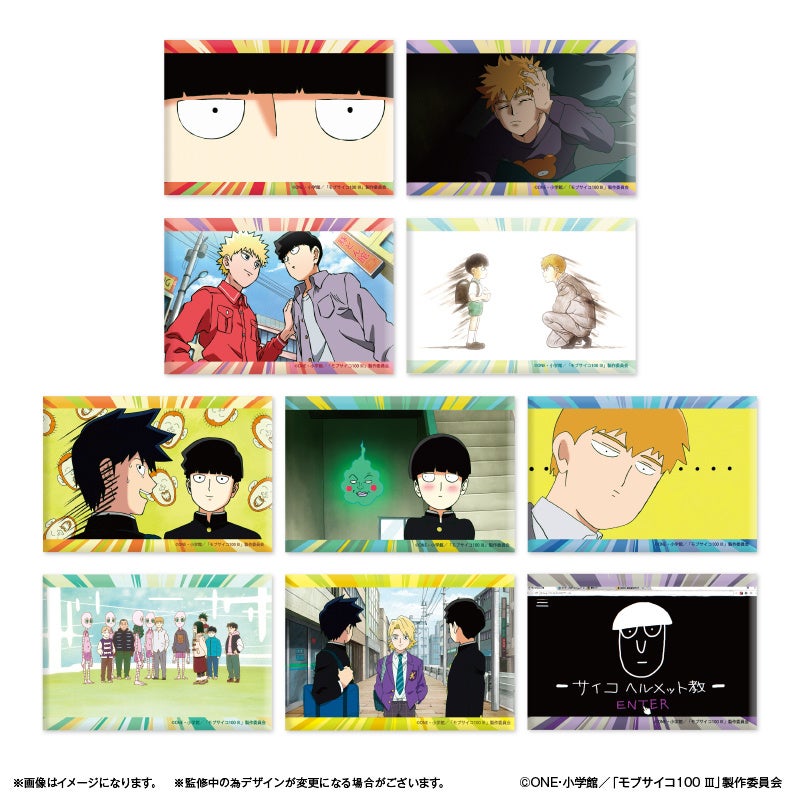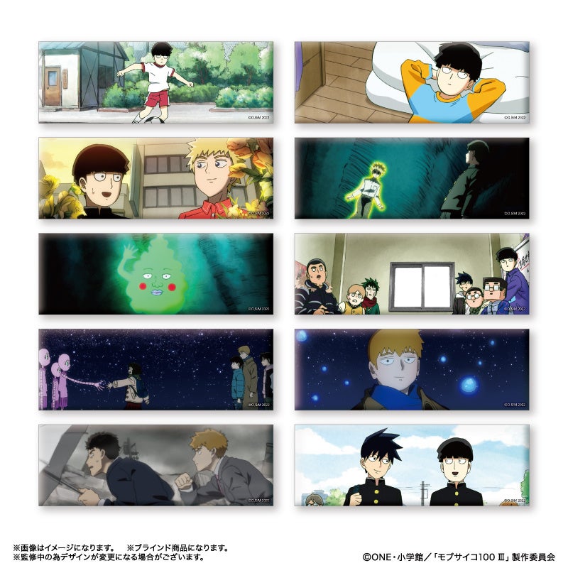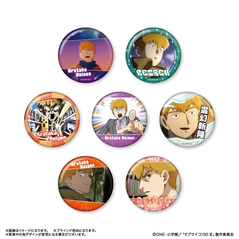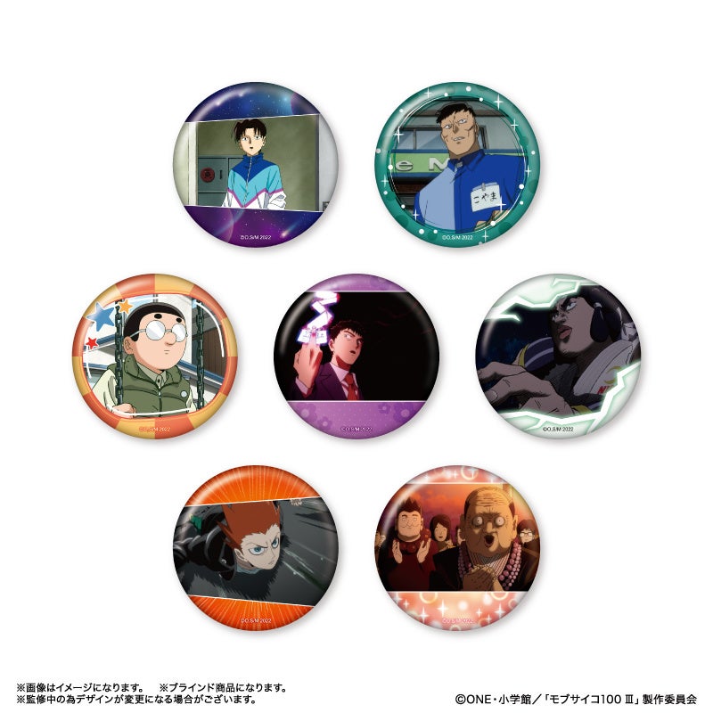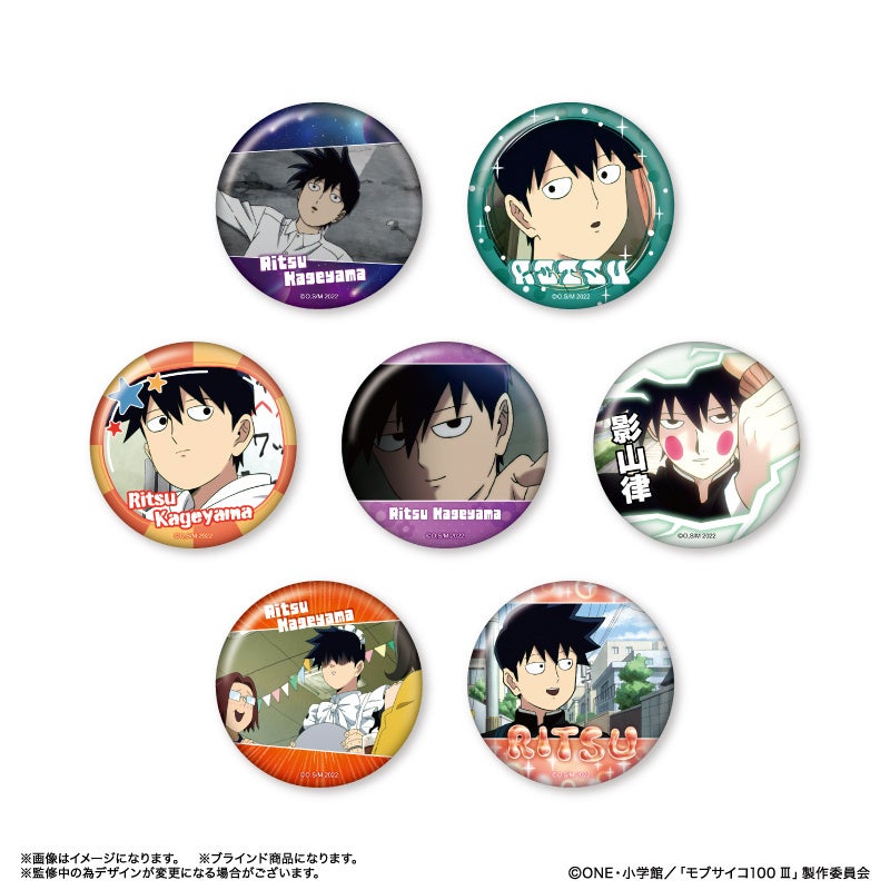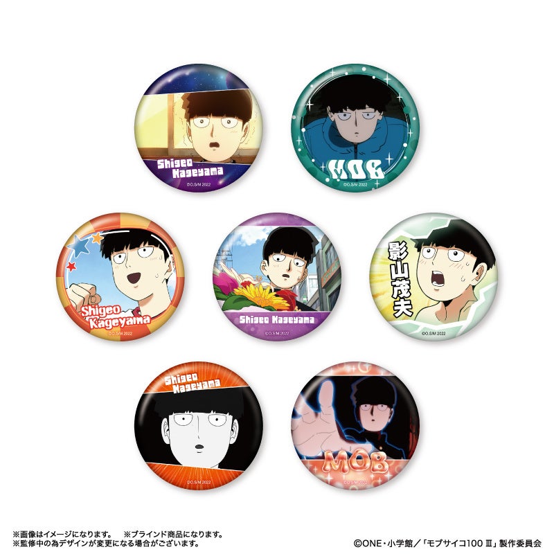 TVアニメ『モブサイコ100 Ⅲ』より、影山茂夫、霊幻新隆、影山律、花沢輝気、霊能力者だけの缶バッジ「だけ缶」が登場!他にもキャラクターのイチ推しシーンが楽しめるアイテムが多数登場!