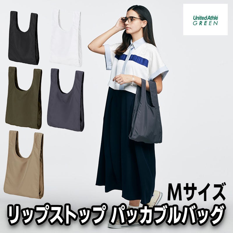 「リサイクルポリエステル」素材を使用したサステナブルなバッグです。携帯性に優れたパッカブル仕様もうれしいポイント。