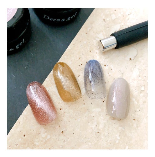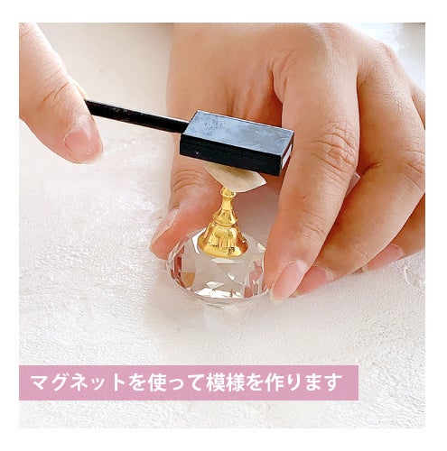 また、マグネットパウダーが入っているカラージェルも登場。マグネットペン・スティックなどのマグネットを使用して好きな模様を作ることができます。
