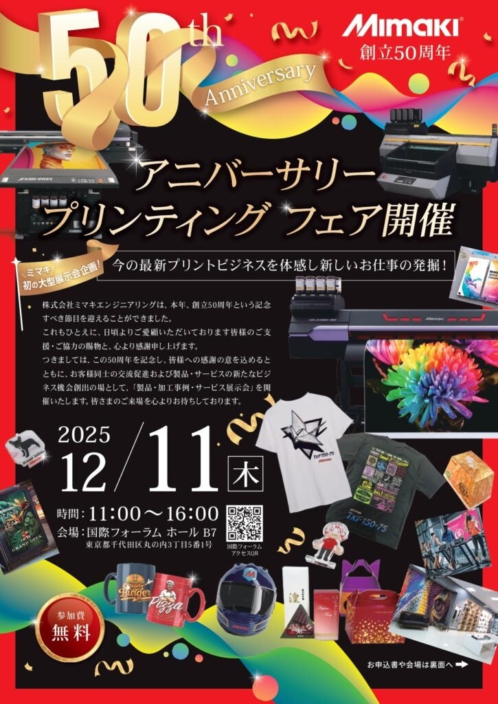 (株)ミマキエンジニアリング 創立50周年記念「アニバーサリープリンティングフェア」にシンクイノベーション(株)出展決定!