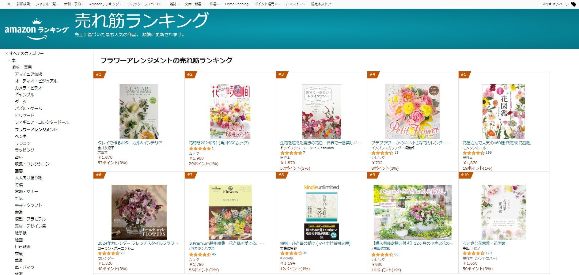 発売前から予約受付好調につき、Amazon売れ筋ランキング 本/フラワーアレンジメント部門で1位を獲得しています。(2024.2.2)