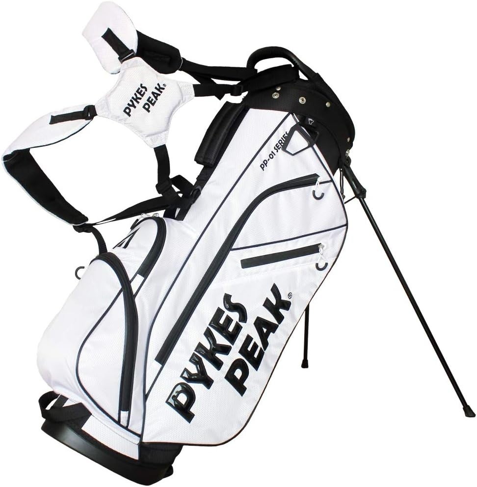 父の日の贈り物に最適なPYKES PEAKのキャディバッグ(47インチ対応・ホワイト)。軽量設計で持ち運びやすく、大容量の収納ポケット付き。スタイリッシュなデザインで、ゴルフ好きなお父さんのラウンドを快適にサポートします。