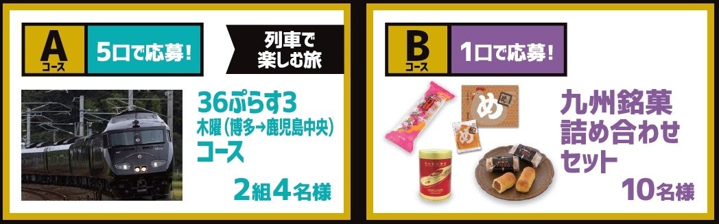 ⑴対象商品1品以上を含む、700円(税込)以上ご購入のレシートに発行されるIDでご応募いただくと、列車で楽しむ旅などが当たる「九州の魅力満喫プレゼントキャンペーン」を実施。