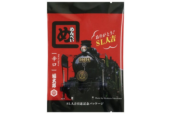 SL人吉引退記念パッケージ。辛いものがお好みの方にぴったりのめんべい。唐辛子の一部に「ハバネロ」を使用しており、刺激的な辛さがくせになります。