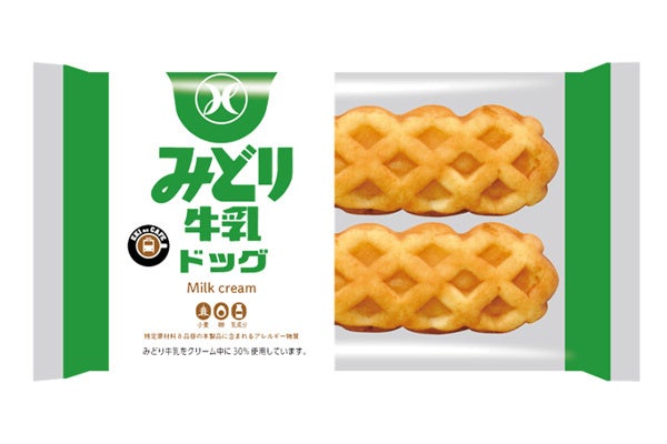 大分県の九州乳業株式会社を代表するブランド「みどり牛乳」入りのミルククリームを、ふんわりしたワッフル生地で包みました。昔から親しまれ、学校給食にも採用される懐かしい味をお楽しみください。