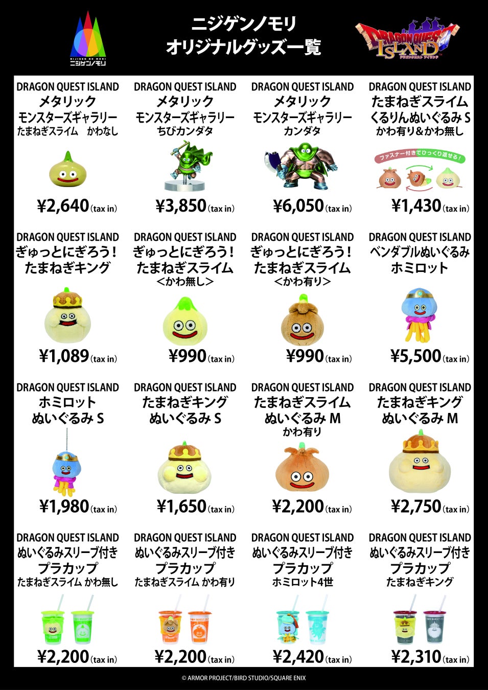 今回出店する『ニジゲンノモリPOPUPストア inイオンモール名古屋茶屋』では、愛知県初の出店を記念し、合計で約200点以上のオリジナルグッズを取り揃えました!そして「ドラゴンクエスト」シリーズでお馴染みの“ふくびき”が商品となった「ドラゴンクエスト ふくびき所スペシャル 〜大魔王ゾーマとはじまりの島!編〜」も出張販売!なかなか淡路島に行けない皆様も、大好きな作品やキャラクターの限定グッズを買い求めに、ぜひお越しください!