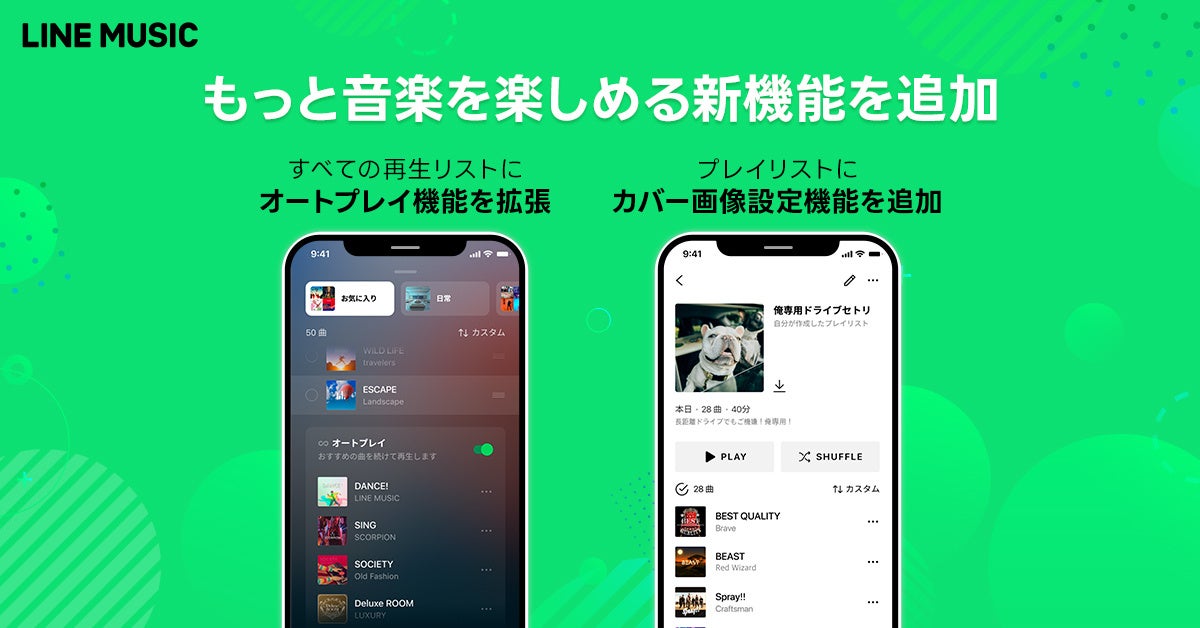 【LINE MUSIC】もっと音楽を楽しめるアップデートを提供開始レコメンド曲を自動再生する「オートプレイ機能」に加え、プレイリストに画像を設定できる「カバー画像設定機能」を追加