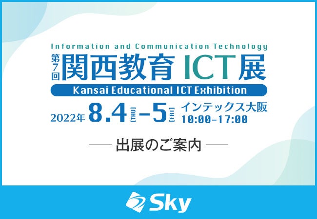 Sky株式会社は、2022年8月4日(木)~5日(金)にインテックス大阪で開催される教育市場を活性化させる西日本最大級の教育ICT展示会「第7回 関西教育ICT展」に出展いたします。
