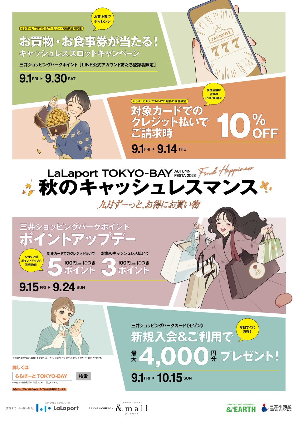 三井不動産商業マネジメント株式会社(所在:東京都中央区、代表取締役社長:大林 修)が運営する、三井ショッピングパーク ららぽーとTOKYO-BAYは、2023年9月1日(金)~9月30日(土)の期間、ファッションやコスメなど空想イラストコーデで話題を呼んだイラストレーター「meeco」とコラボし、秋のキャッシュレスマンス「AUTUMN FESTA 2023 Find Happiness」を開催します。