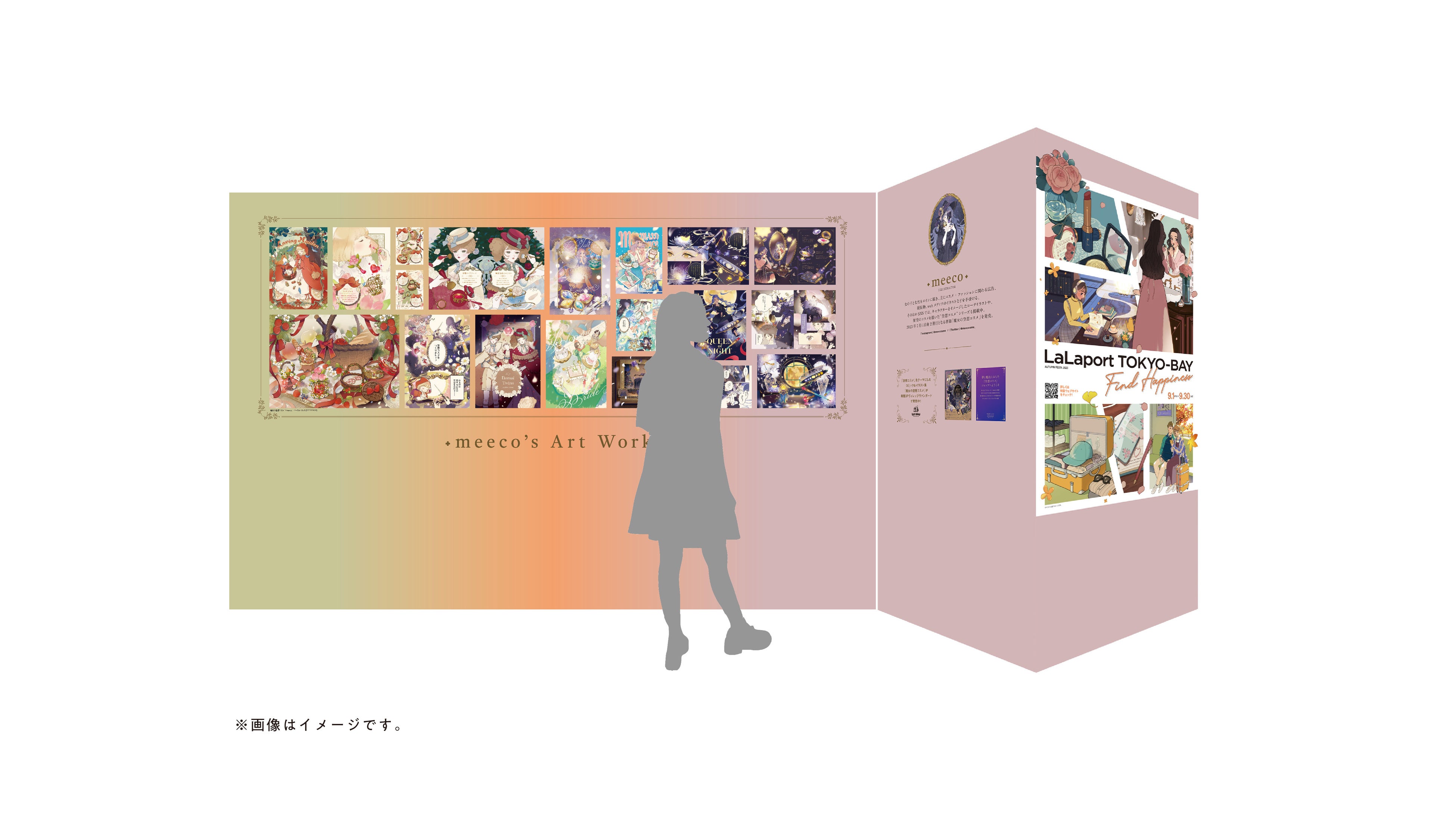 特設エリア「TOKYO-BAY AUTUMN FESTA 2023」では、若年層から人気を集めるイラストレーター「meeco」の世界観が楽しめるアート展示を実施するとともに、秋の最新アイテムやコーデをご紹介。