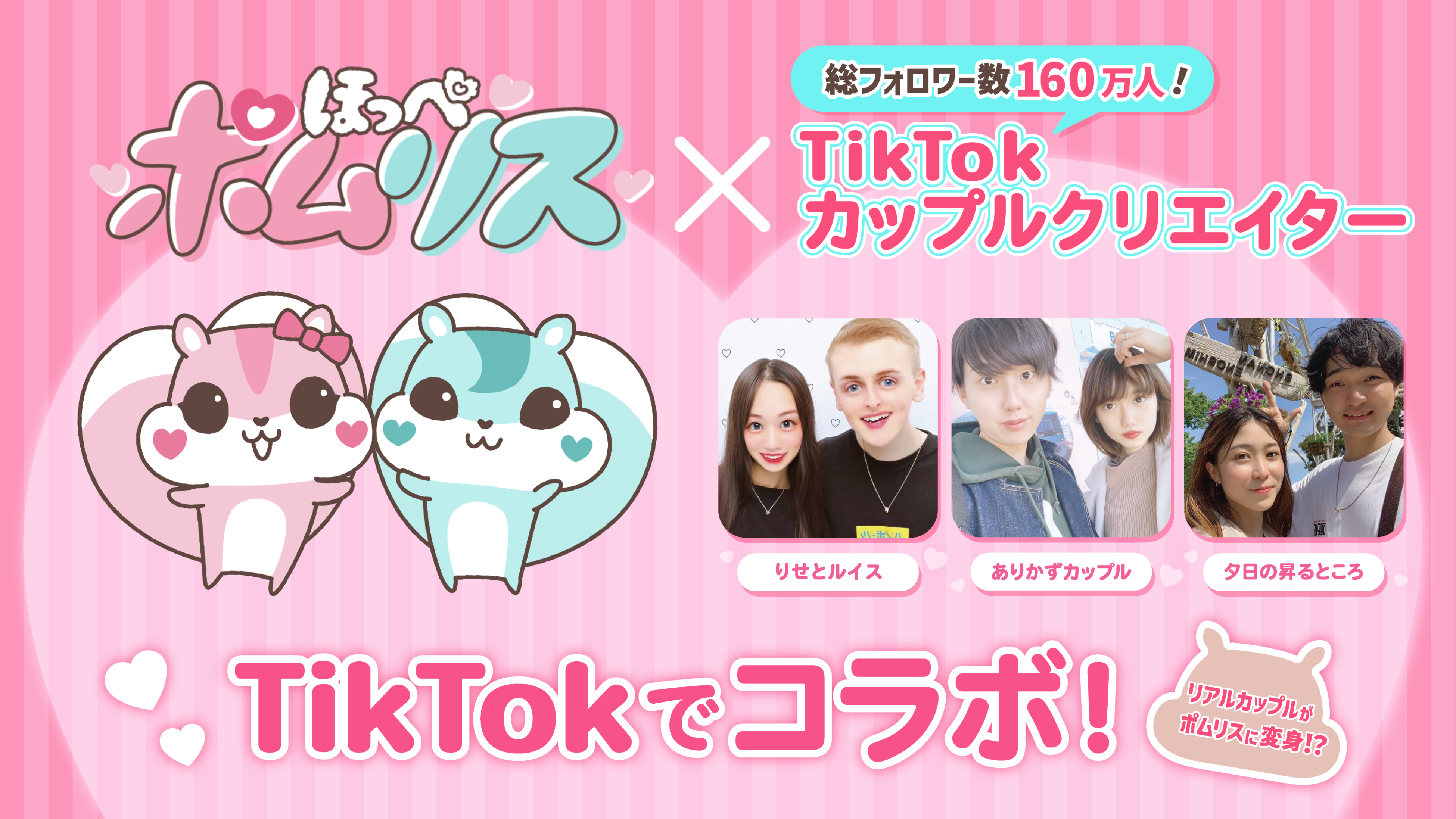 「ほっぺポムリス」がTikTok総フォロワー数160万人超えのカップルクリエイター3組とコラボ! コラボデザインQUOカードが当たるキャンペーンも開催!