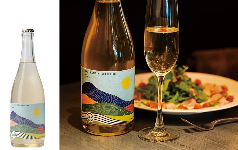 コラボレーション第一弾の「IWAI KAMOSHI-SPARKLING No.1」は、みずみずしい果実味と優しい泡を閉じ込めたスパークリングワインです。フレッシュなシトラスのアロマと、酵母に由来するパンドミーやトースト香が合わさった心地よい香り。口当たりはジューシーで、しなやかな酸味が感じられます。中盤からはパンドミーのニュアンスが味わいにボリュームを与えています。