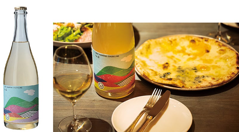 コラボレーション第二弾の「IWAI KAMOSHI-SPARKLING No.2」は、瓶内二次発酵後6ヶ月熟成。豊かな風味が高い次元で調和した、ワンランク上の辛口スパークリングワインです。最初は酵母や乳酸発酵に由来するトーストなどの香りが主体で、口当たりはフレッシュ。少し温度が上がるとリンゴや柑橘類の香りが立ち上り、ジューシーで柔らかい味わいに変化していきます。緊張感のあるミネラルとキレの良い酸味が調和しています。「No.1」と比べると、「No.2」は緻密でキメが整ったフィネスを備えており、味わいはフレッシュかつ、厚みとコクを感じます。