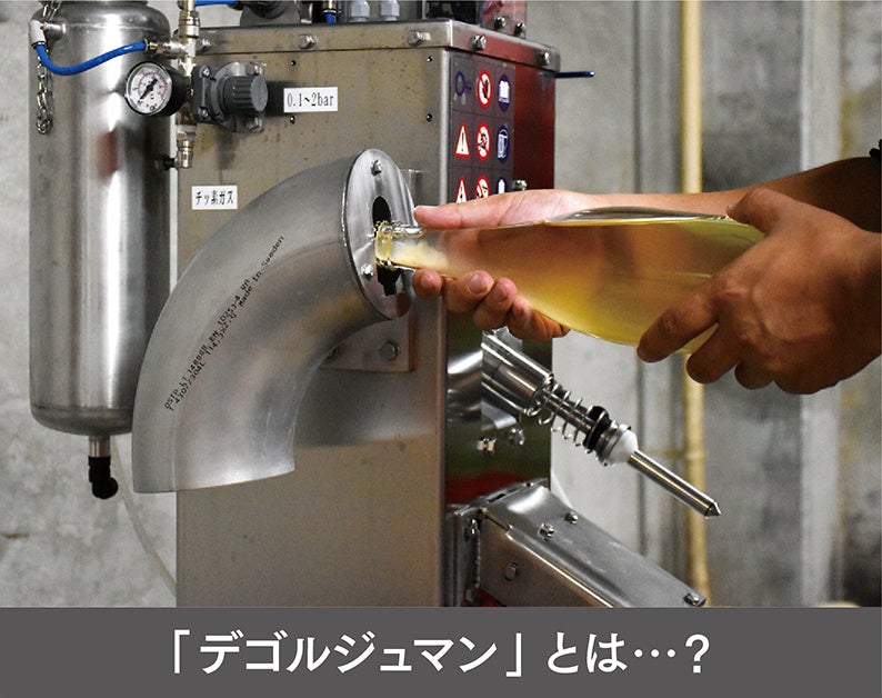 スパークリングワインの製造工程において、瓶内二次発酵で生じた澱(おり)を取り除く作業。瓶内二次発酵の後に、瓶の底に沈んでいる澱を瓶の口に集める作業(ルミアージュ)によって瓶口に集めた後、デゴルジュマンをおこないます。
