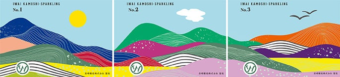 No.1、No.2、No.3のボトルを並べていくと、ブドウ畑の風景がつながっていくまるで一つの絵画に見えるようなラベルで「 IWAI KAMOSHIーSPARKLING 」の連続するワインの物語を演出します。