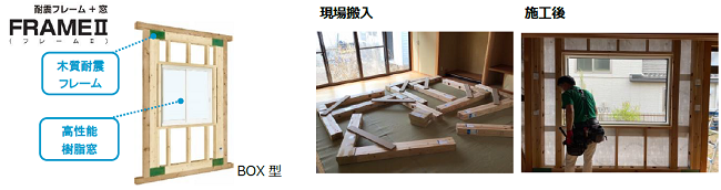 耐震性能向上では、耐震診断結果により補強計画を行い、更には窓を減らさずに開口部を補強できる、YKK APの開口部耐震商品「FRAMEⅡ」BOX型を2か所に採用し、耐震性能(改修前 評点0.28⇒改修後 評点1.83)(※7)を高めました。