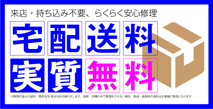 宅配修理代金から往復送料をお値引き、実質送料無料で宅配修理が可能です。