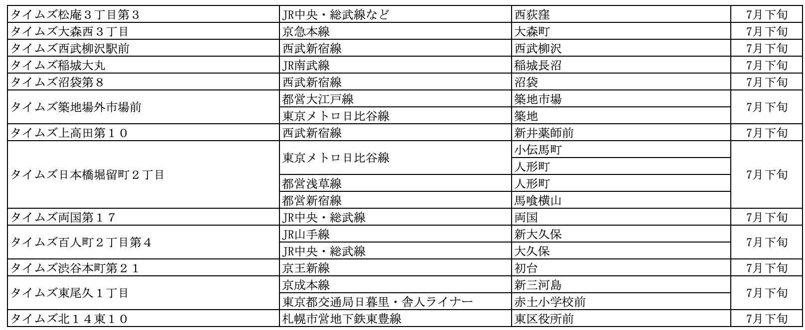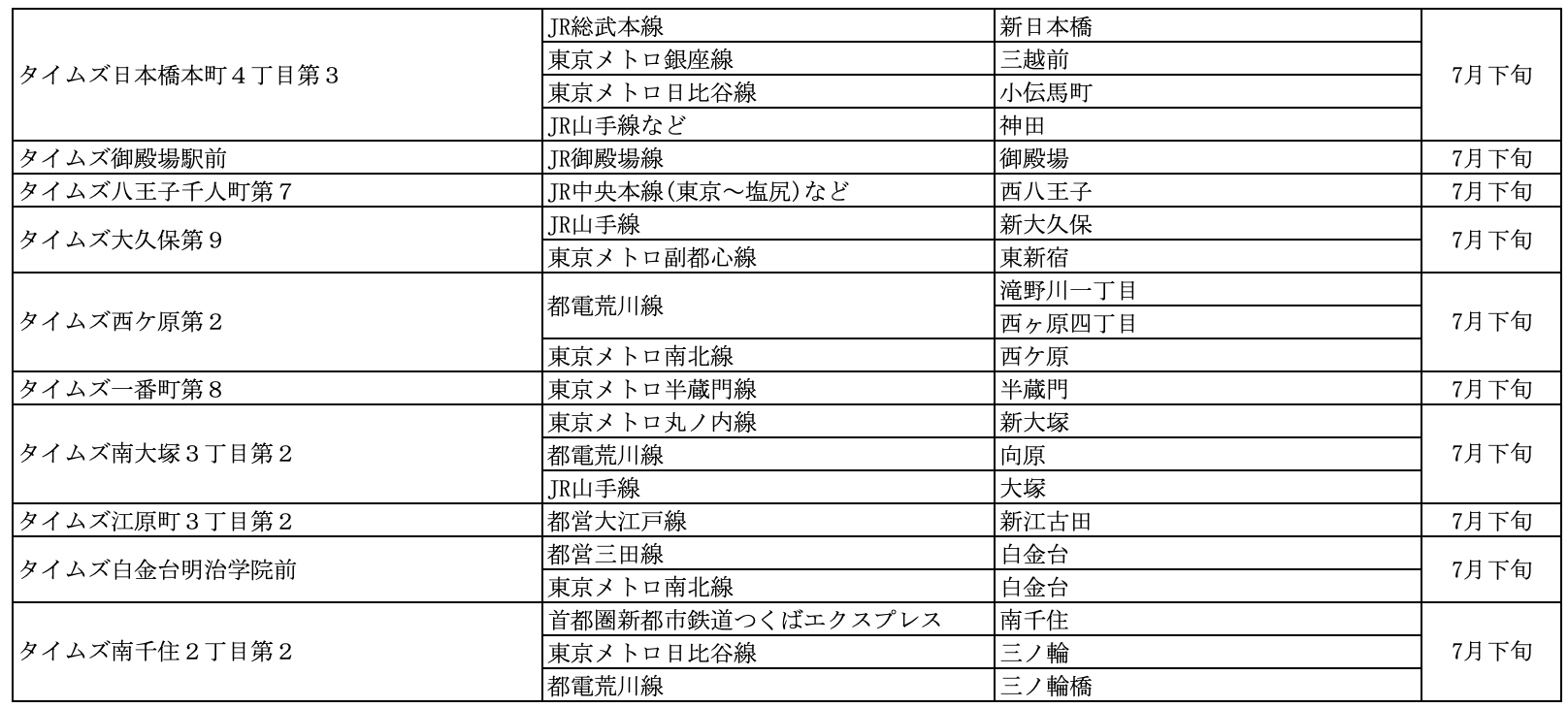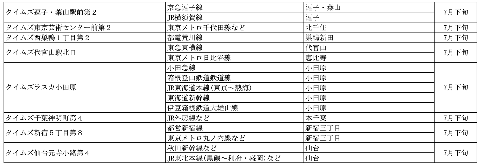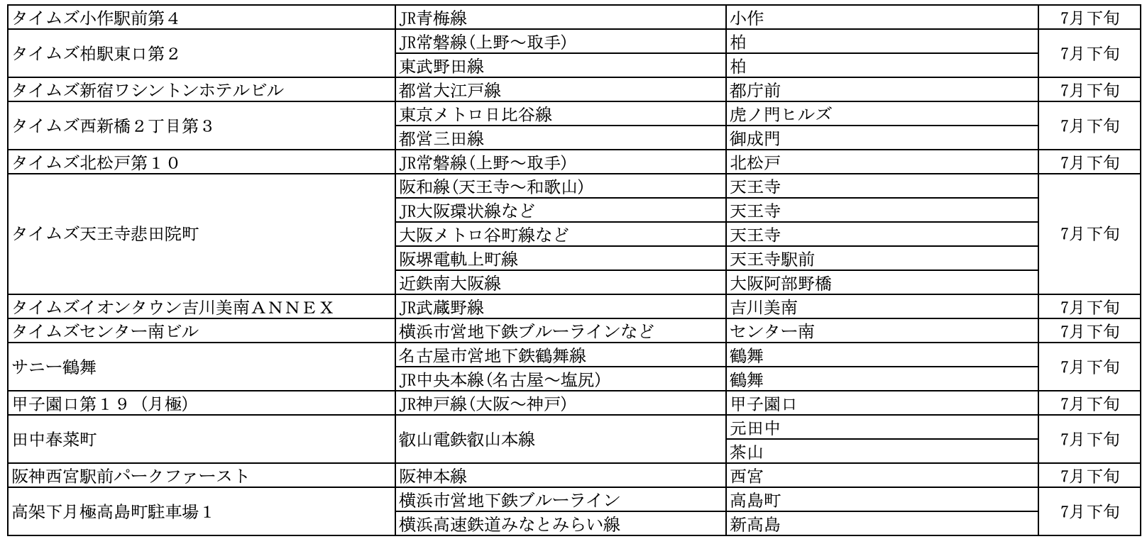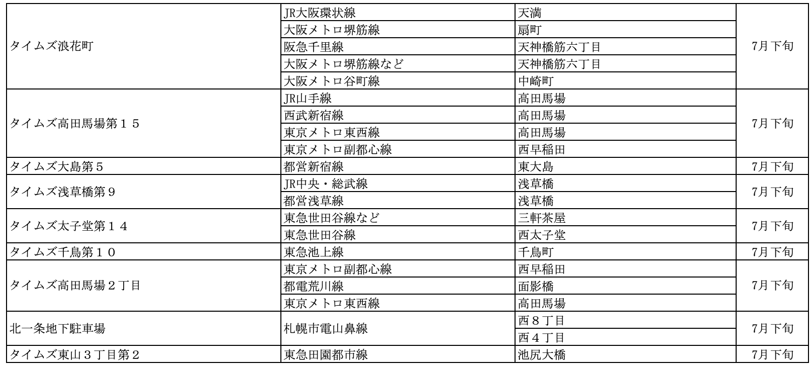 【サステナビリティアクション】パーク&ライドが可能なタイムズパーキング レール&カーシェアが可能なタイムズカーステーション 7月のオープン情報