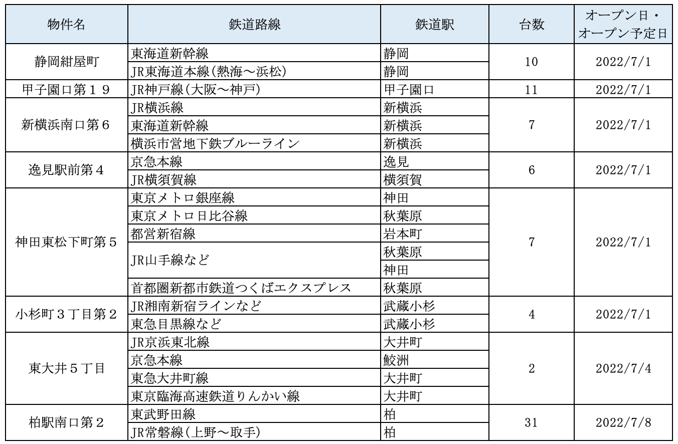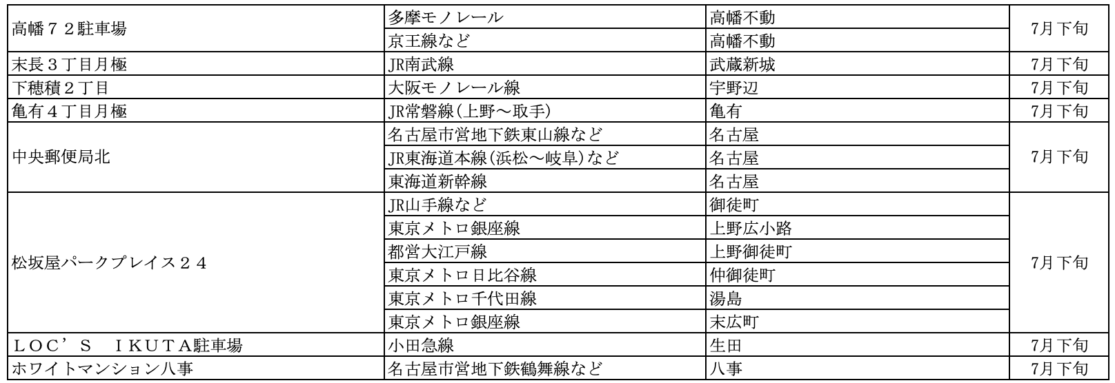駐車場およびカーシェアステーションのオープン予定については毎月第5営業日にお知らせいたします。