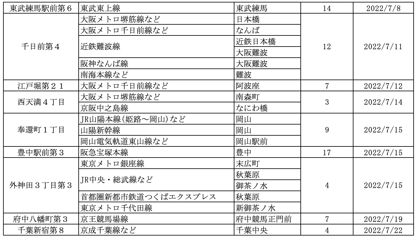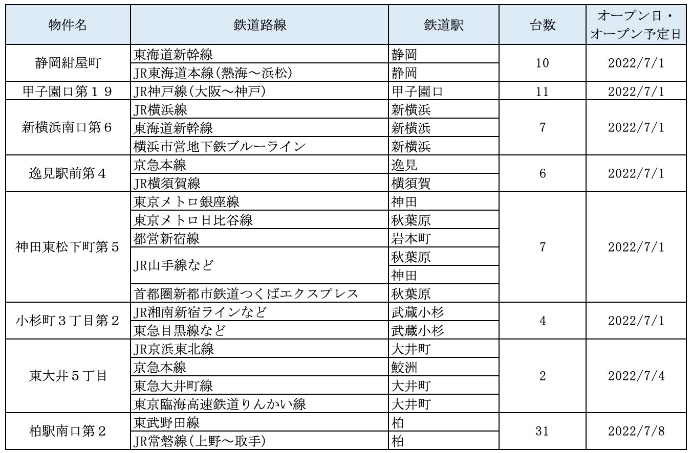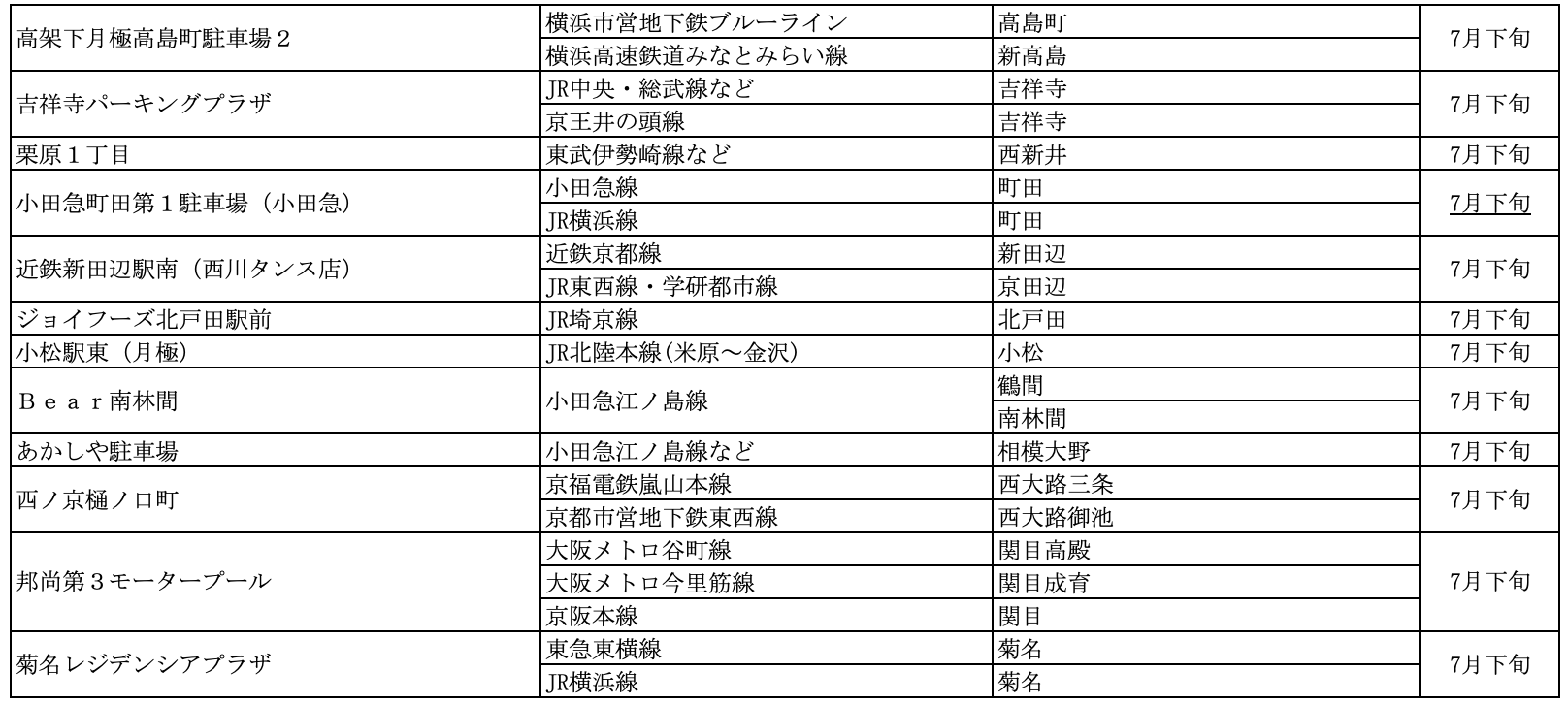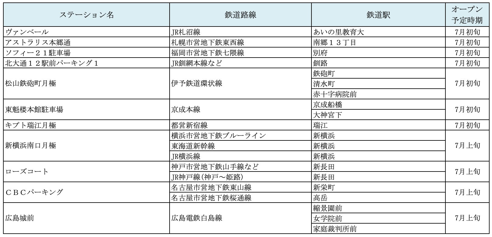 7月にオープンおよびオープン予定の「パーク&ライド」が可能な駐車場は17件、「レール&カーシェア」が可能なステーションは122件です。