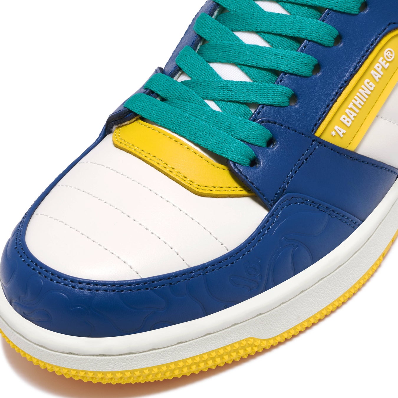 つま先にはステッチを、ヒール部分にはBAPE STA™モチーフのパッチをあしらっています。それぞれのアッパーには最高品質のカーフレザーを使用し、つま先と履き口の周りにはデボス加工でLINE CAMOを施しました。