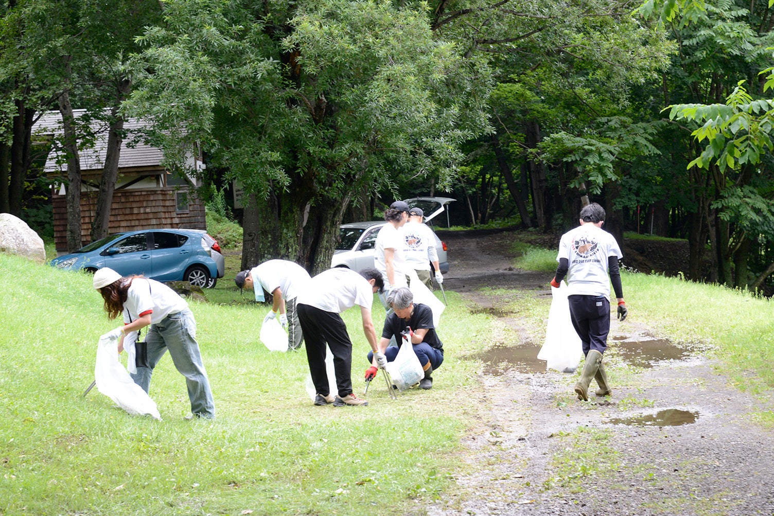 清掃場所の層雲峡園地は前夜、開催された花火の打ち上げ場所でもあり、飛び散ったゴミや紙くずが雑草の中、ゴロゴロした石の間などにあり、約1時間の清掃作業で集めたごみは1か所に回収されました。