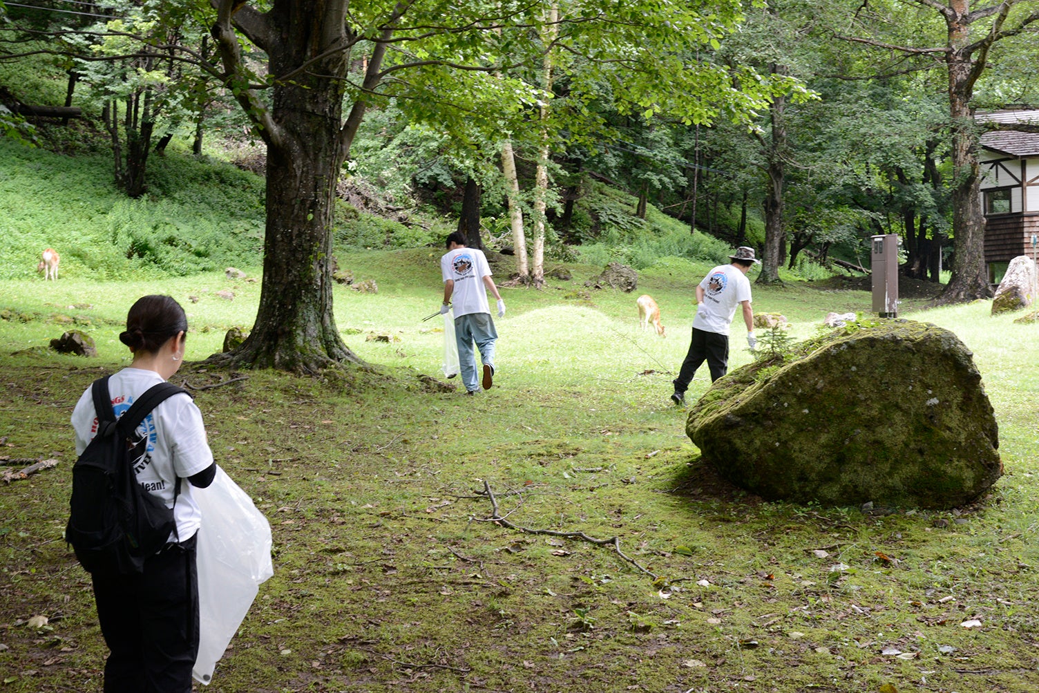 動物と自然との共生を図る上川町らしく、当日は野生のシカも現れ、まるで清掃作業に参加しているかのようでした。