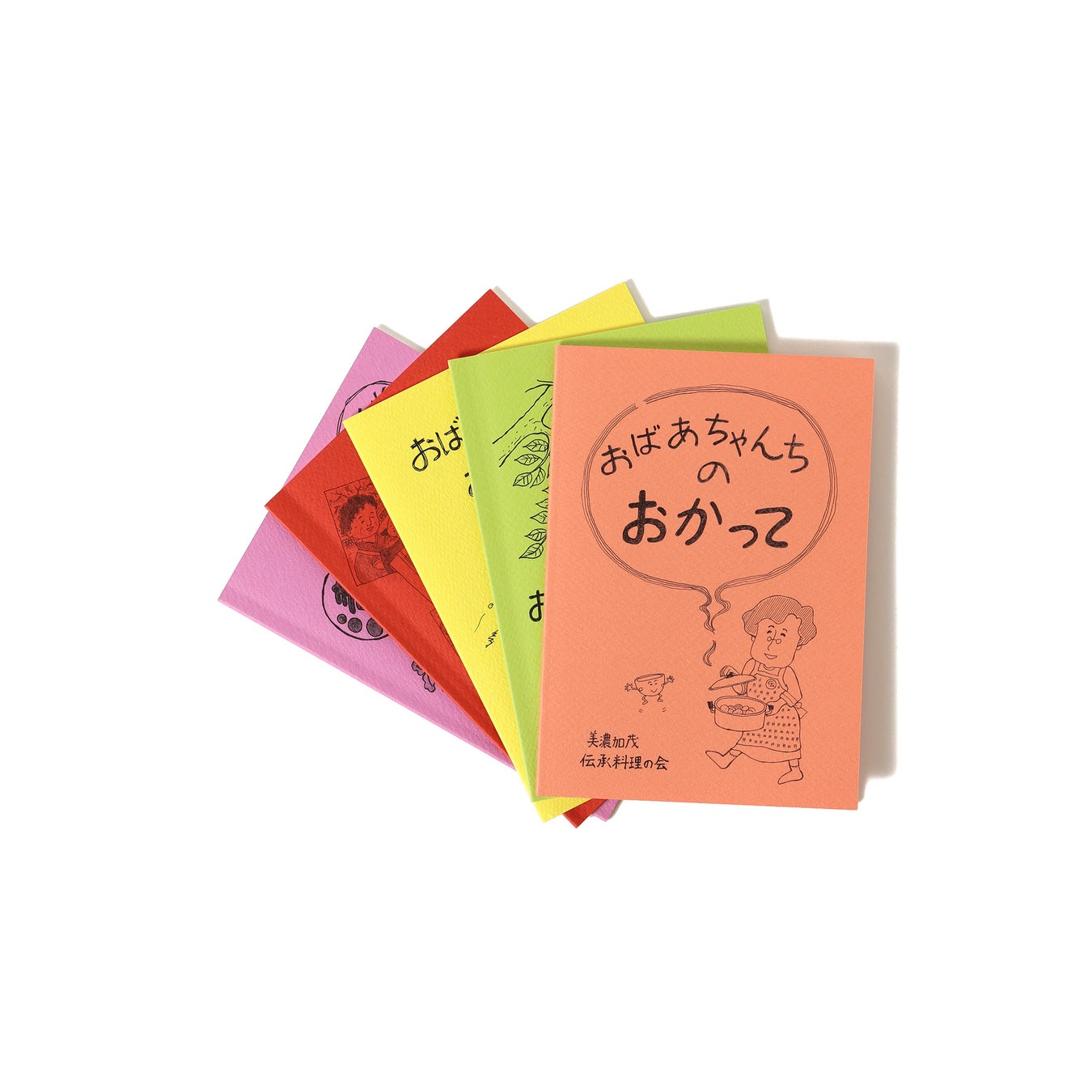 「おばあちゃんちのおかって」とは、美濃加茂市に今でも残っている季節の郷土料理をまとめたレシピ本です。料理のレシピと合わせて、当時の思い出を懐かしそうに話すおばあちゃんが目に浮かぶような、あたたかいイラストも見どころのひとつ。イラストを使ったセットのバンダナは、本の内容に合わせた “おばあちゃん”“お祝い”“漬け物”の三種類。